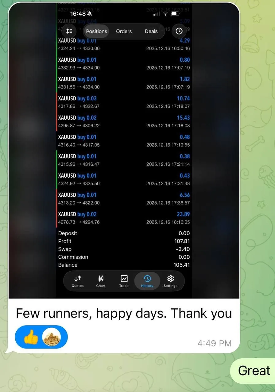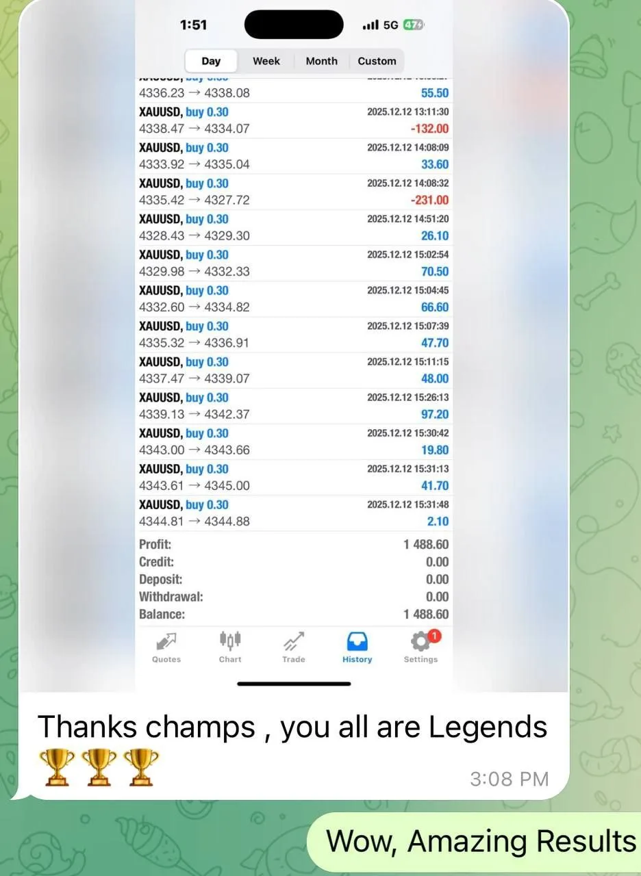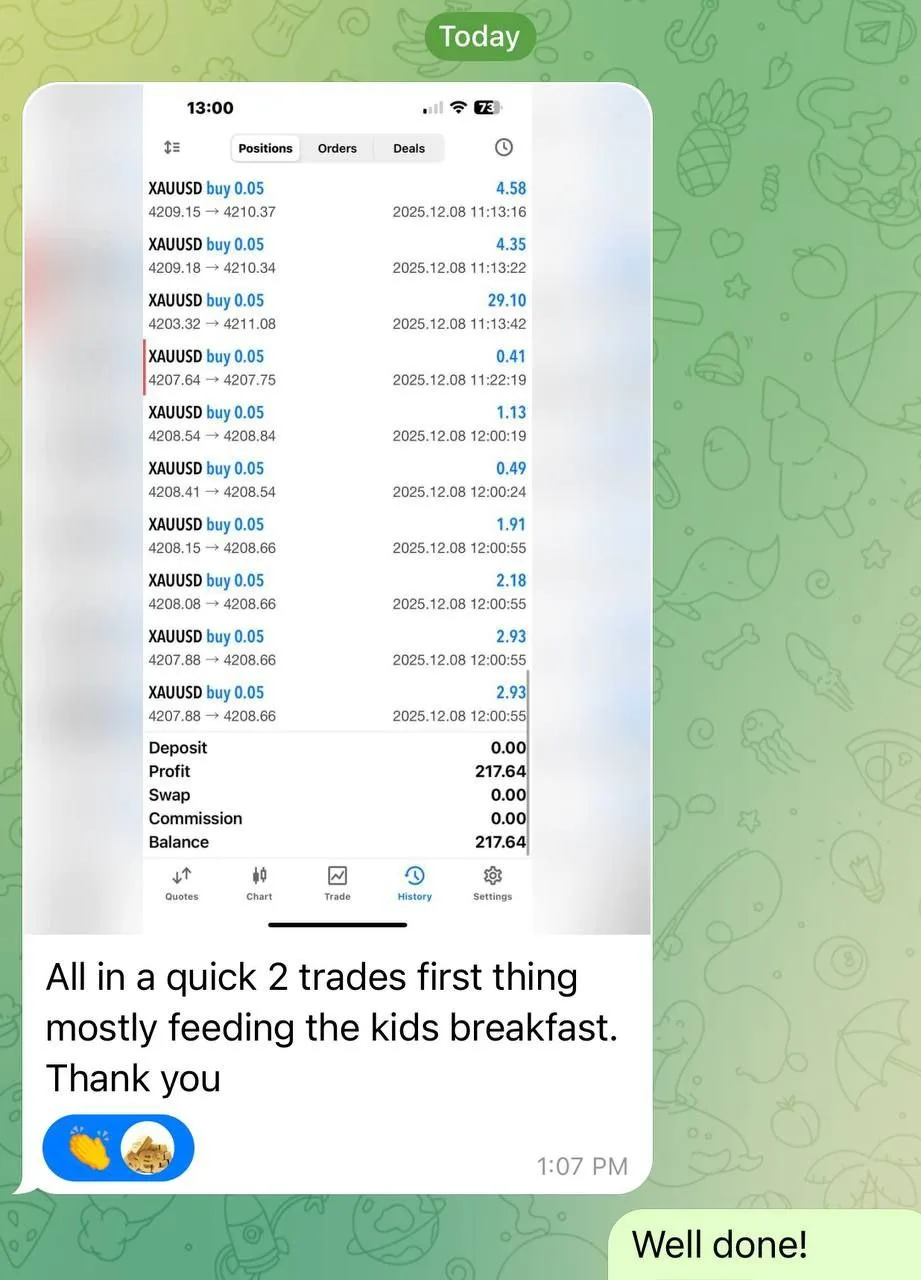 Every trading day, our lead trader sends precise signals directly to your phone. You place the trades on your schedule.