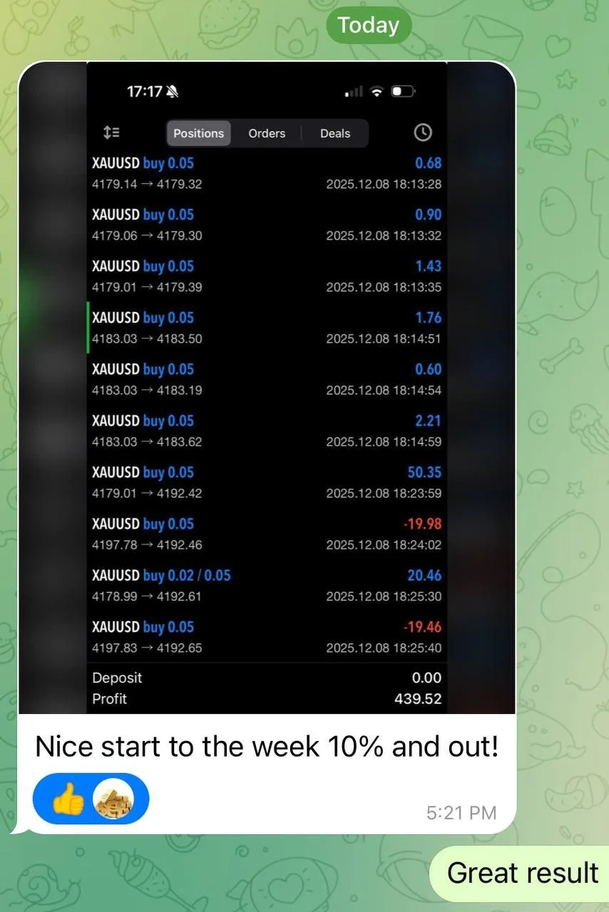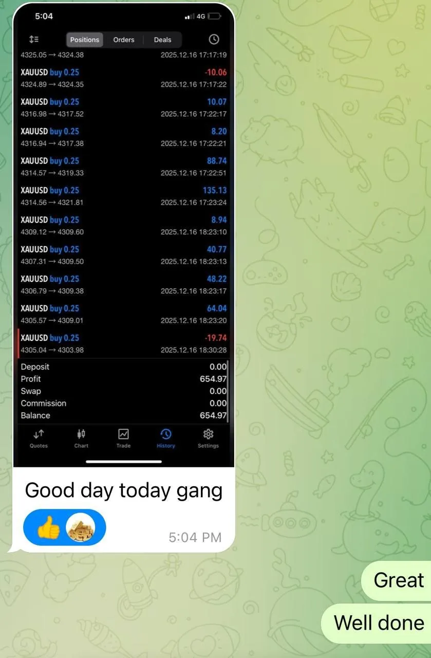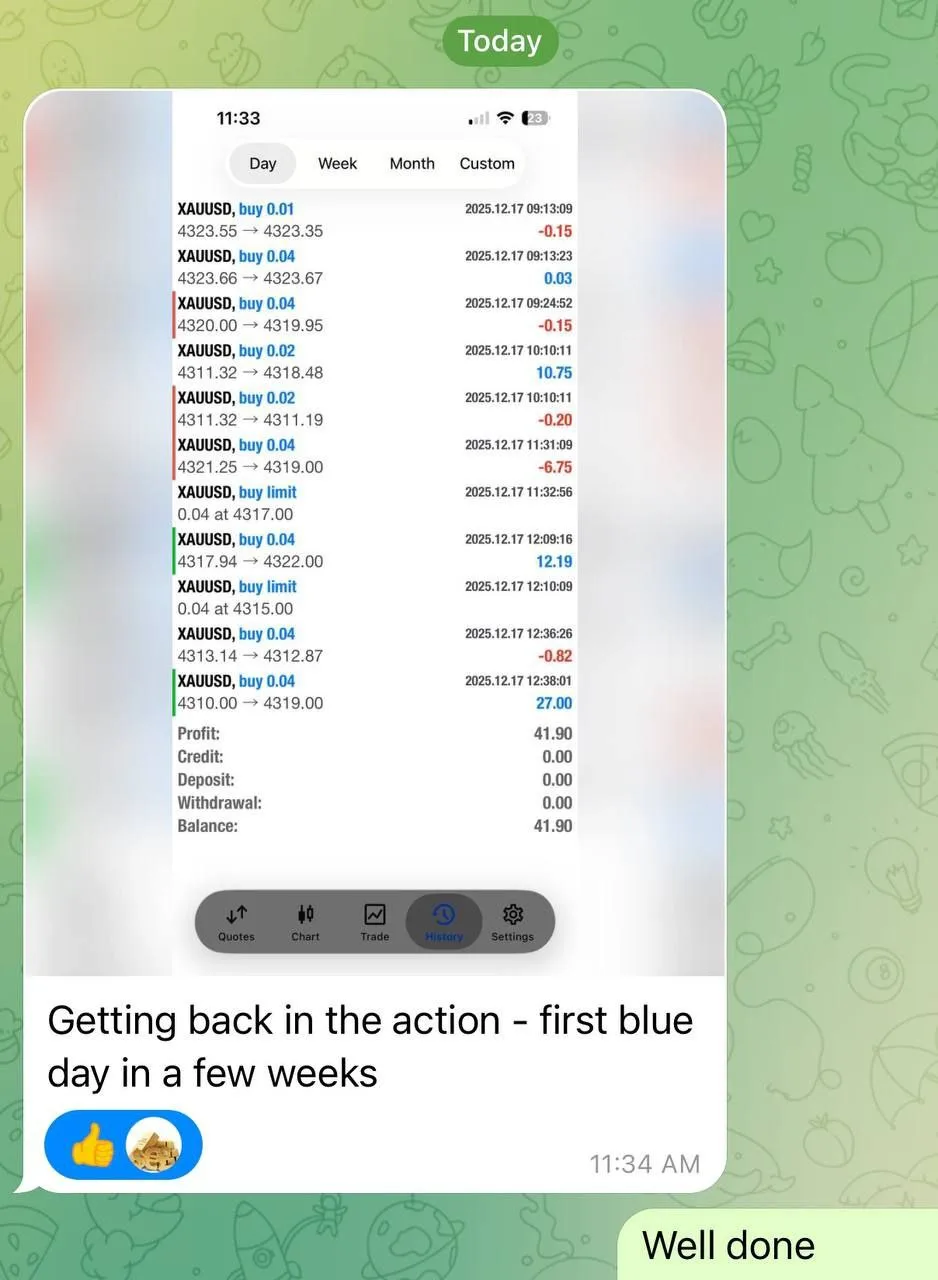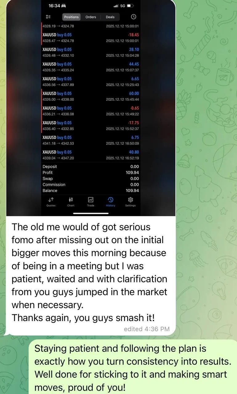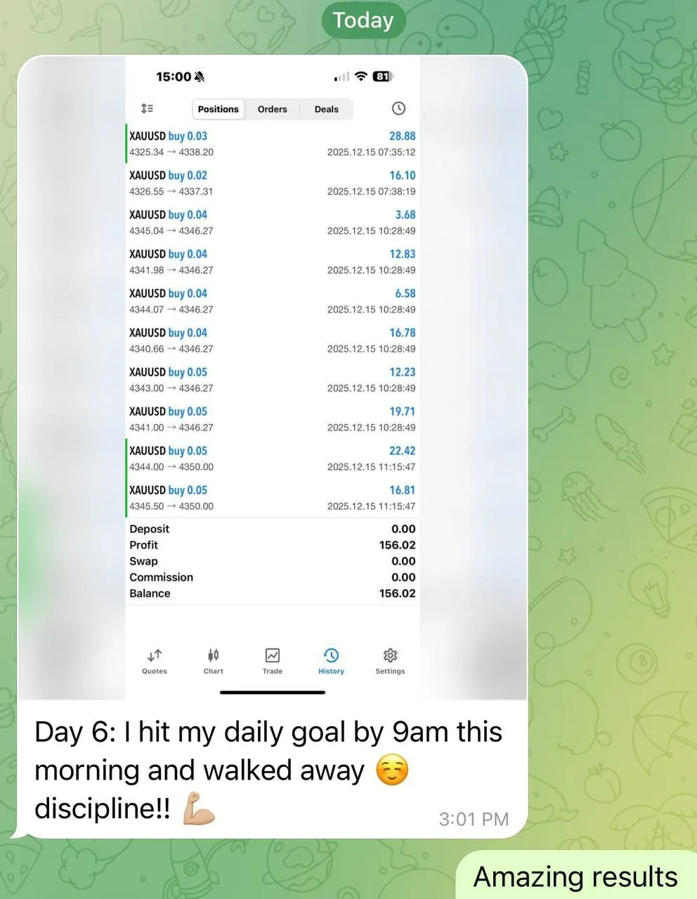 Join the free WhatsApp community and start learning: live trading room sessions, daily gold analysis, and a team that actually wants to help you get started. When you're ready, we'll guide you every step of the way.