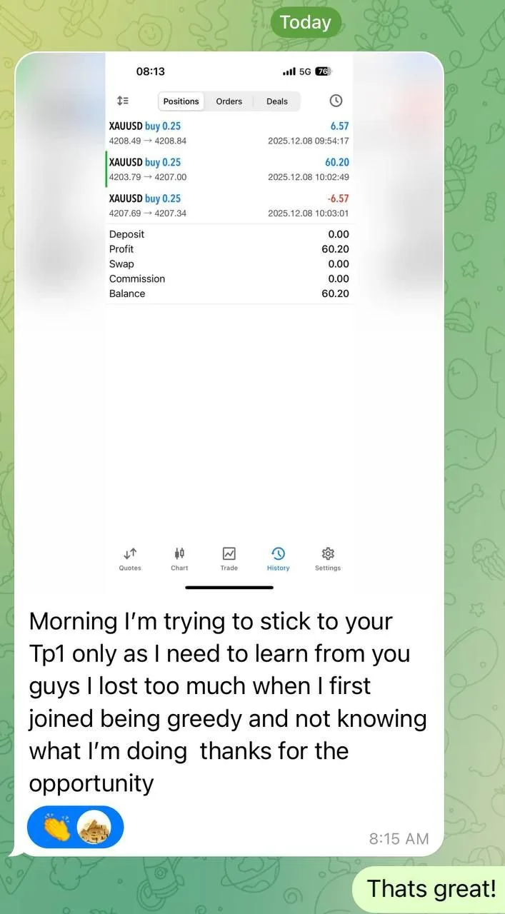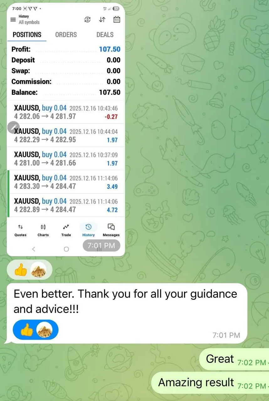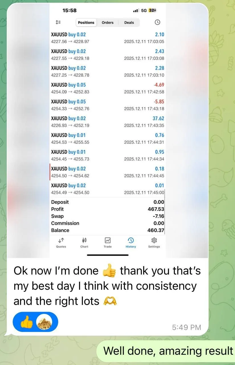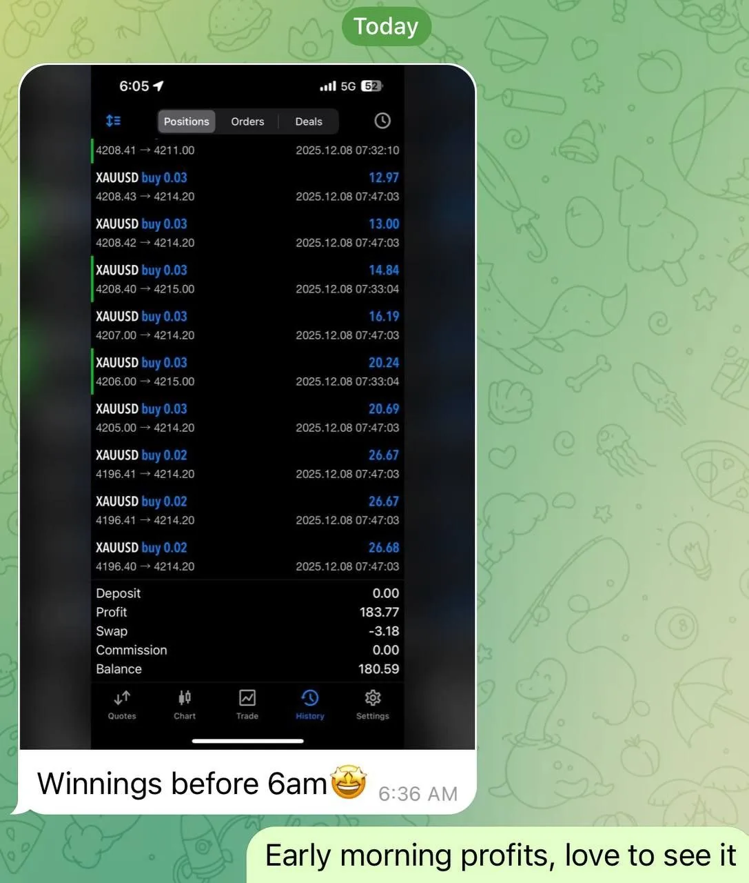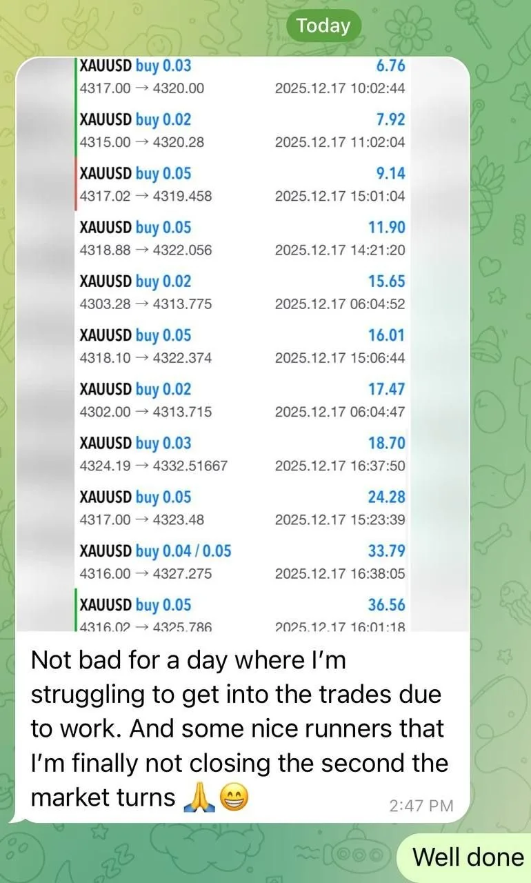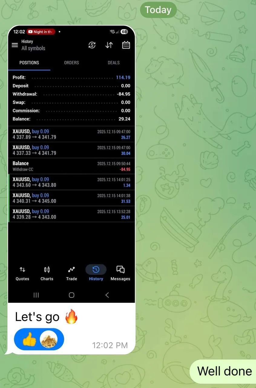 Join the free WhatsApp community and start learning: live trading room sessions, daily gold analysis, and a team that actually wants to help you get started. When you're ready, we'll guide you every step of the way.
